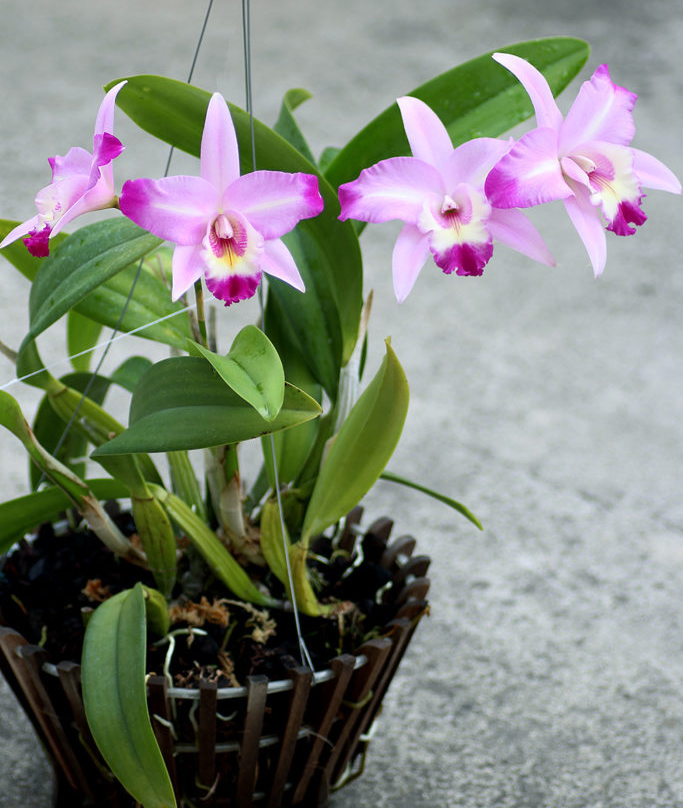 Our orchid baskets are generally designed to be deeper (taller) than the regular square Vanda baskets in the market, so that they can be used for most of orchids (such as Cattleya, Laelia, Dendrobium, Brassavola, Stanhopea, Epidendrum, Lycaste, Masdevallia, Miltonia, Odontoglossum, Oncidium, Phalaenopsis). As can be seen in the gallery our Laelia and Cattleya grow and bloom extremely well in these baskets. We offer wooden baskets with various sizes (4″ to 14″) to accommodate from seedling to specimen orchids. They can be used either as hanging baskets or table top ones. Most of the popular growing media, such as bark, sphagnum moss, coconut husk, charcoal can be used with these wooden orchid baskets. If you wish to use small-sized potting mixes, a thin liner of coconut fibers can be placed inside the basket.